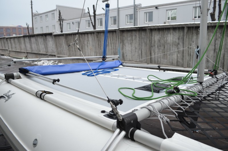 Additionally, an asymmetric spinnaker – gennaker can be installed on a catamaran. It is an effective sail for downwind courses.