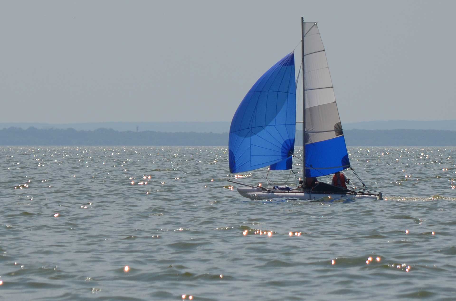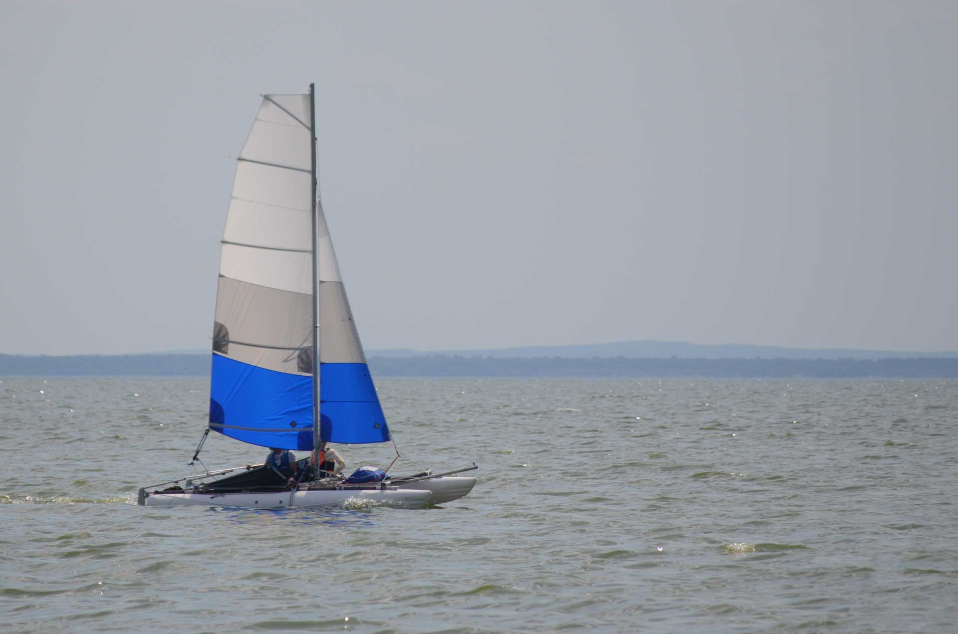 Additionally, an asymmetric spinnaker – gennaker can be installed on this catamaran.  It is an effective sail for downwind courses.