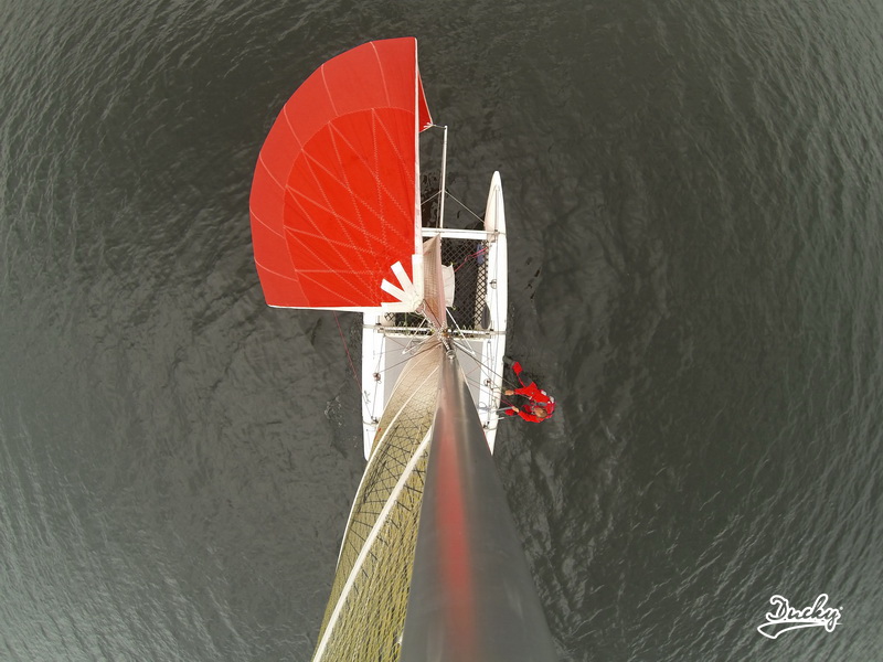 Additionally, an asymmetric spinnaker – gennaker can be installed on a catamaran. It is an effective sail for downwind courses.