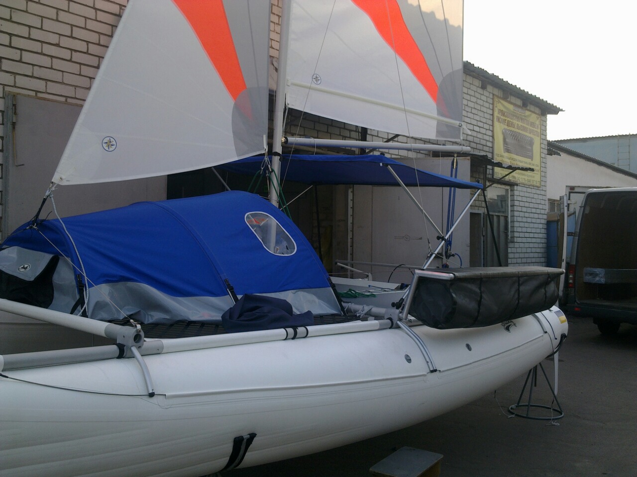 Also outboard engines with a power up to 4.0 hp can be installed on this catamaran via an additional motor bracket attached to the aft beam.